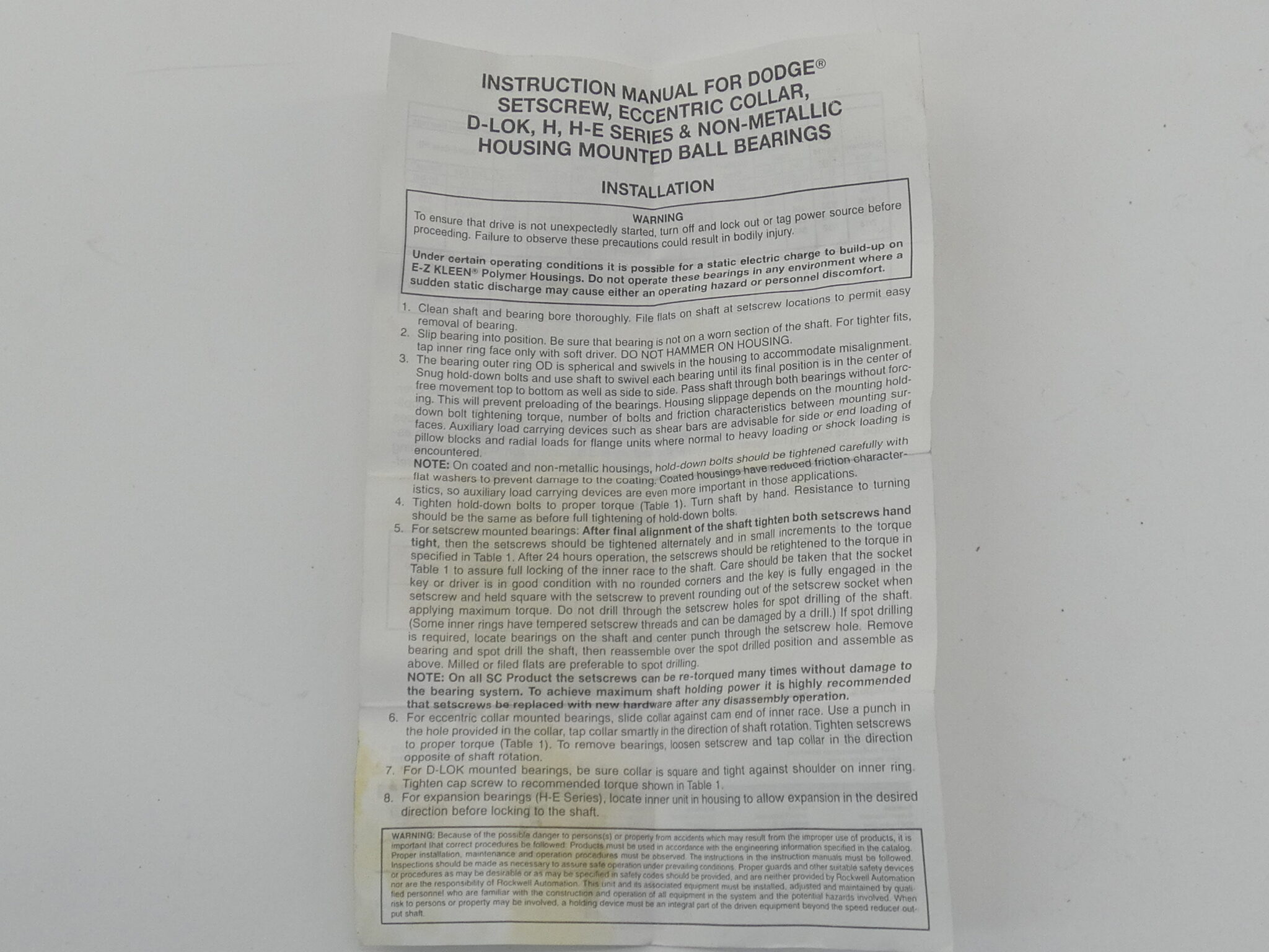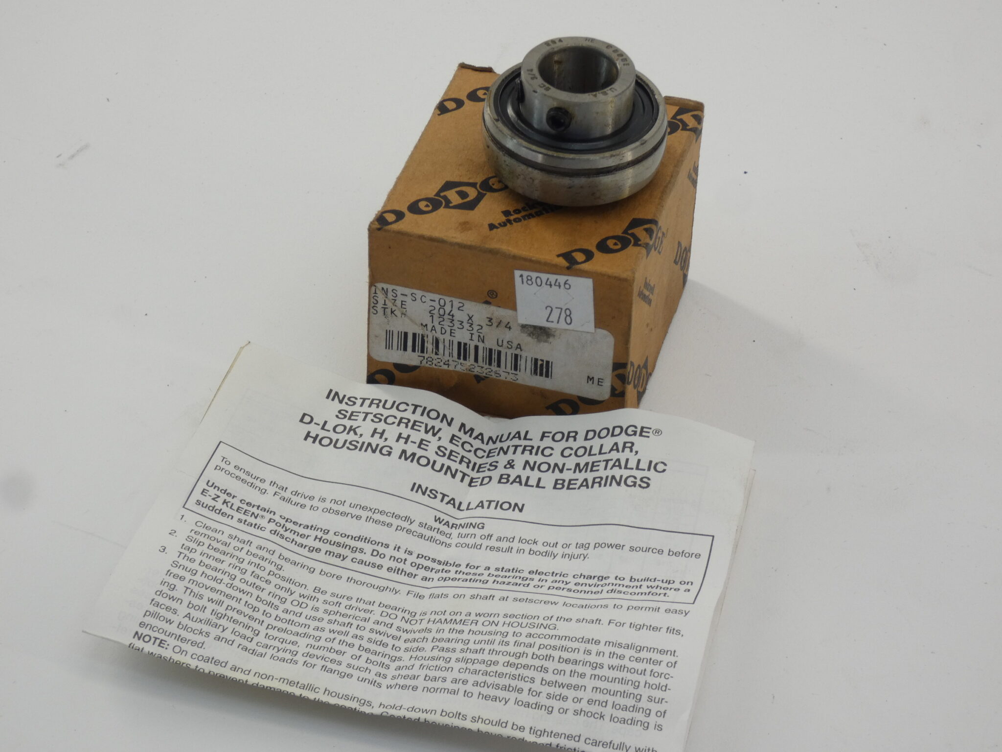 Notes: Dodge ball insert bearing is new surplus in excellent condition.