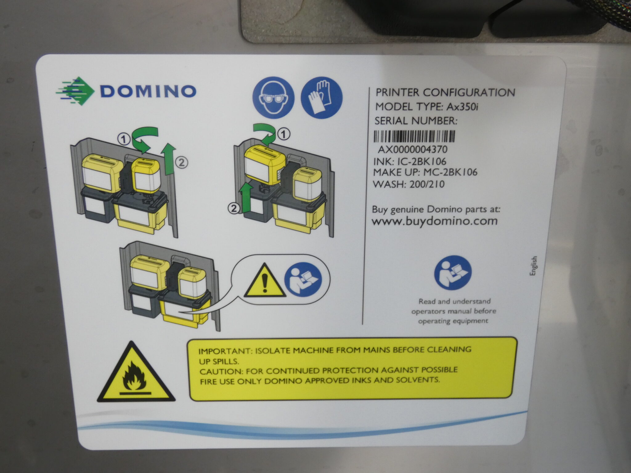 Notes:Â Industrial continuous inkjet printer with monitor is used in good condition. Tables are available while supplies last.
