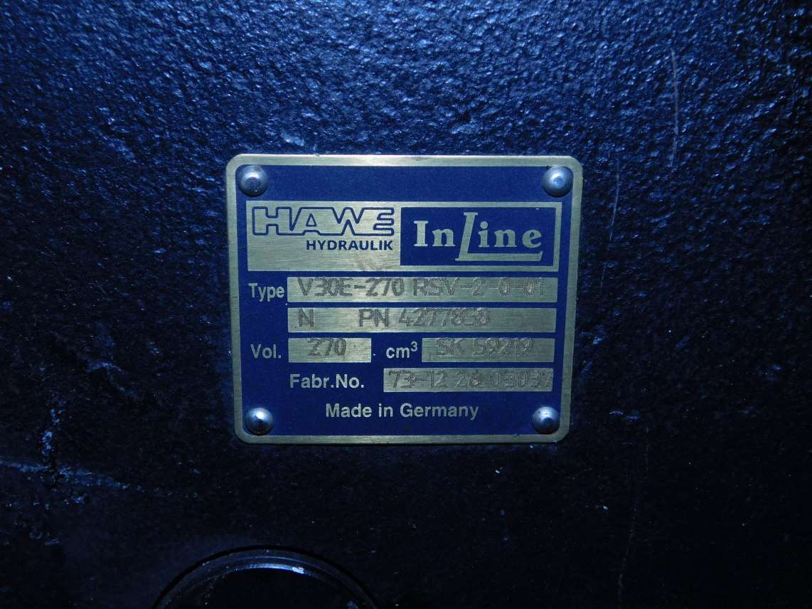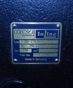 This Hawe V30E Series is a variable displacement axial piston pump. This pump was connected to another pump, but has been inspected and confirmed never placed into service.