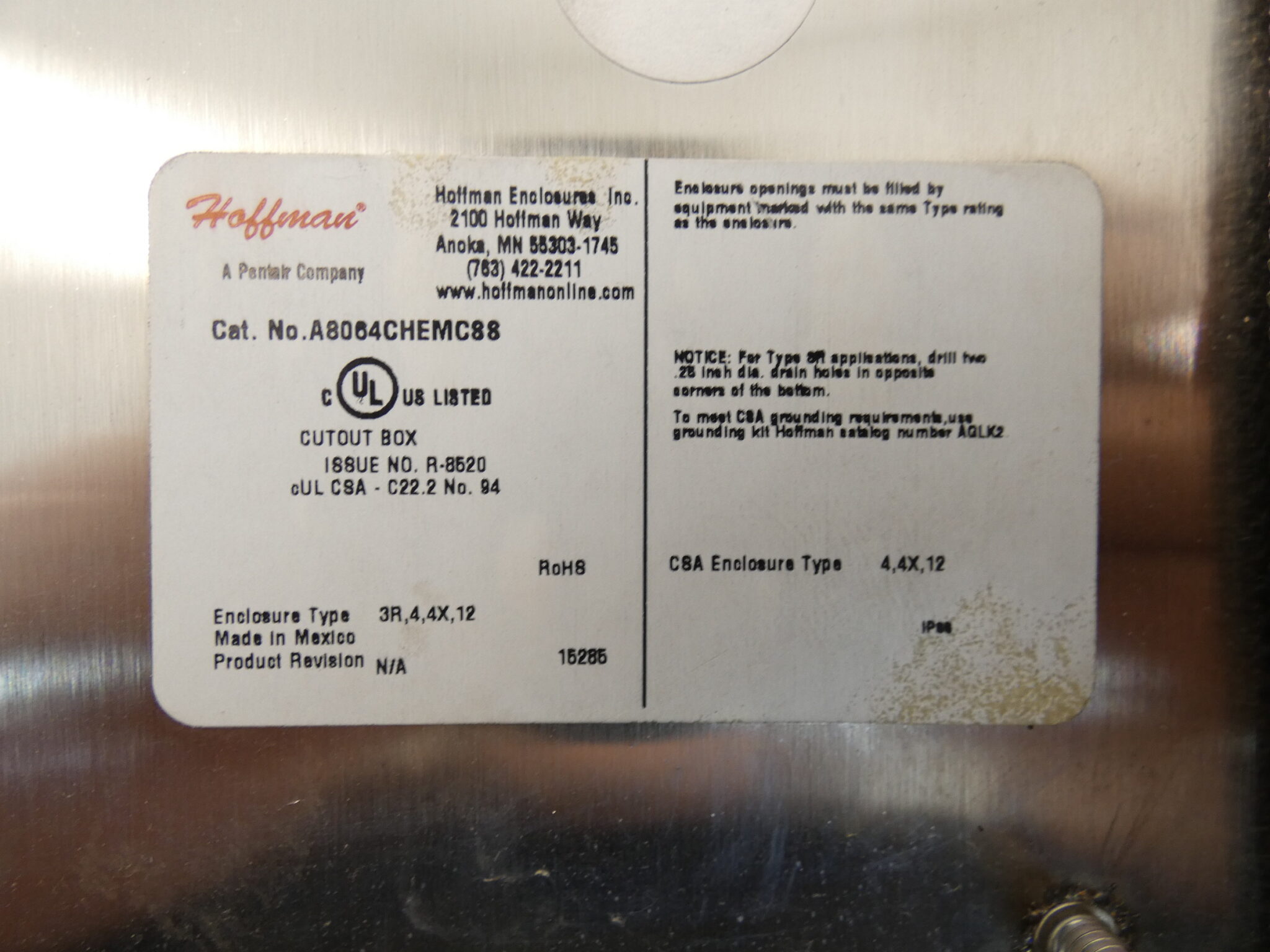 - Manufacturer: Hoffman Pentair