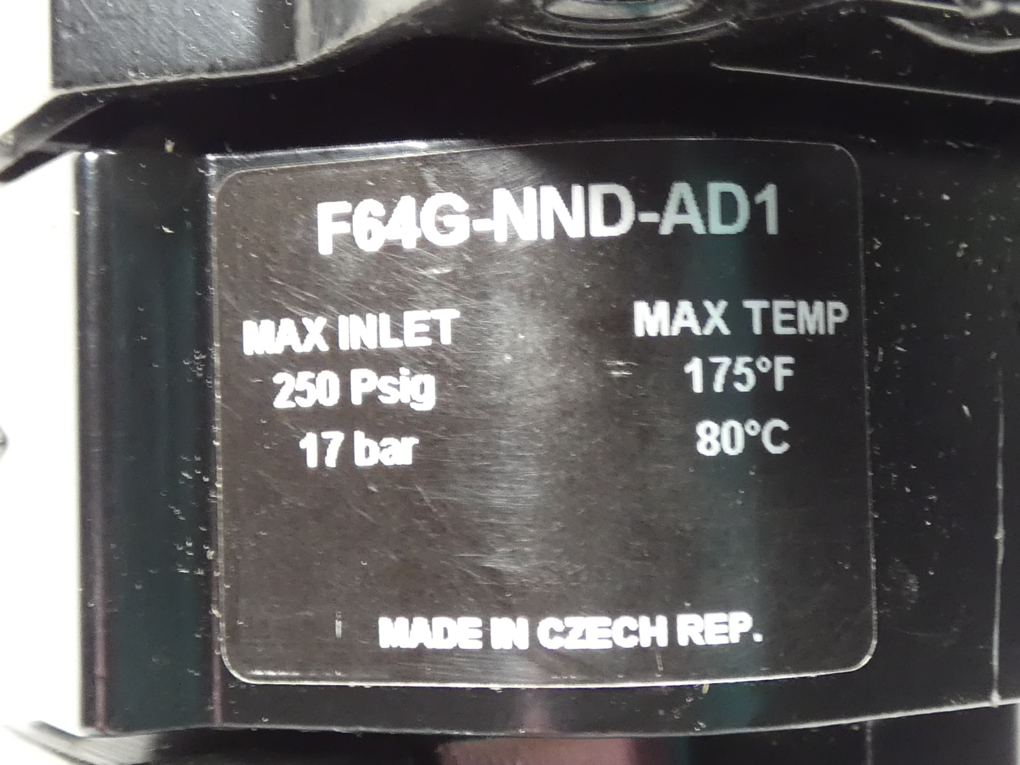 Max Inlet: 250 PSIG, 17 Bar