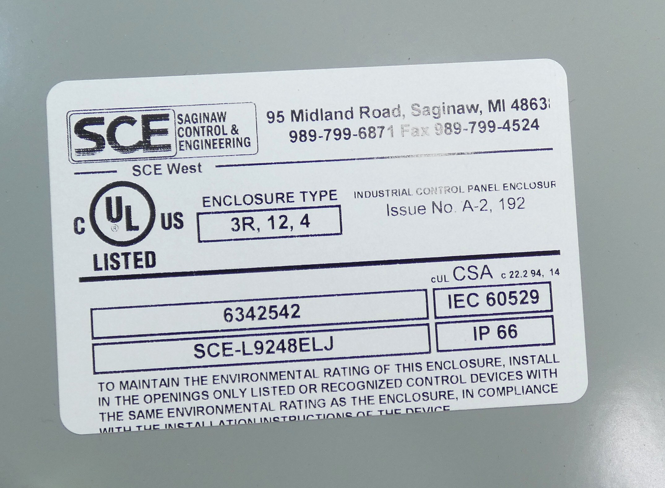 - Model/Part #:Â SCE-L9248ELJ