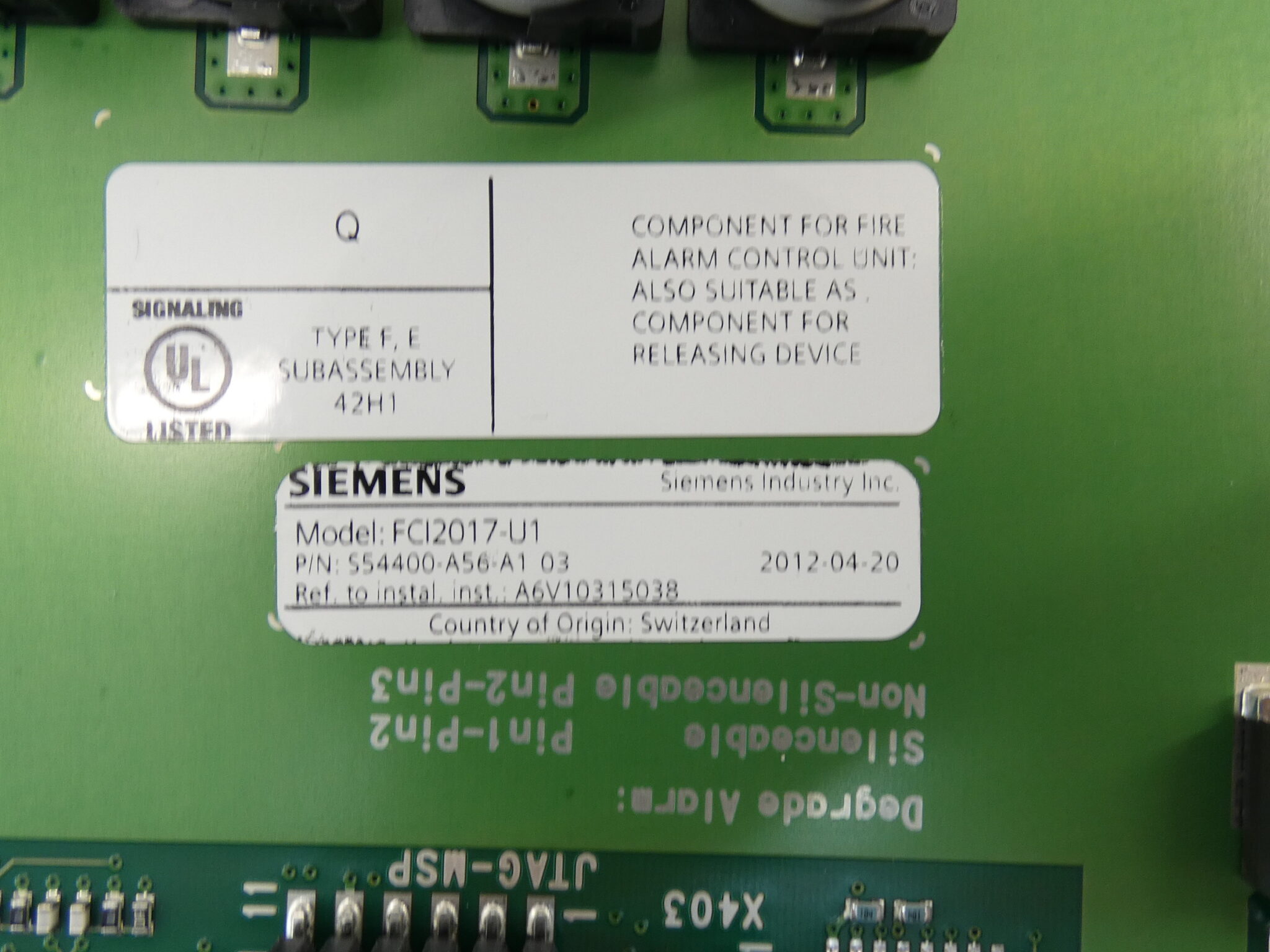 - Model/Part #: FCI2017-U1, 1P S54400-A56-A1