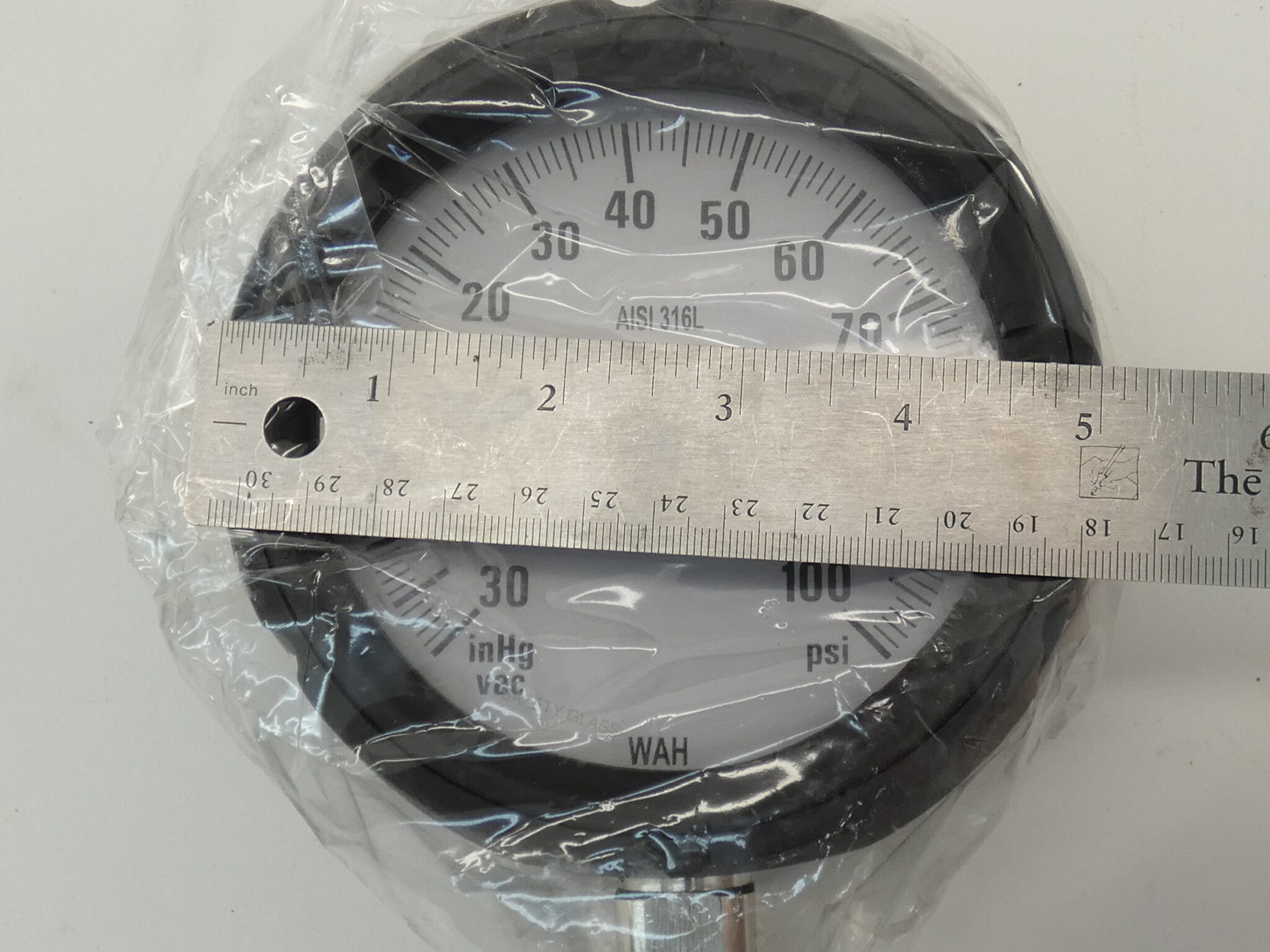 Notes:Â Vacuum pressure gauge is new surplus in excellent condition. The vacuum pressure gauge is in the original factory box.